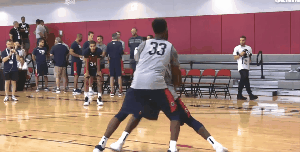 有的時候他不用做多余的動作,直接靠身高臂展的優(yōu)勢,流暢的一記后轉(zhuǎn)身跳投就能命中。